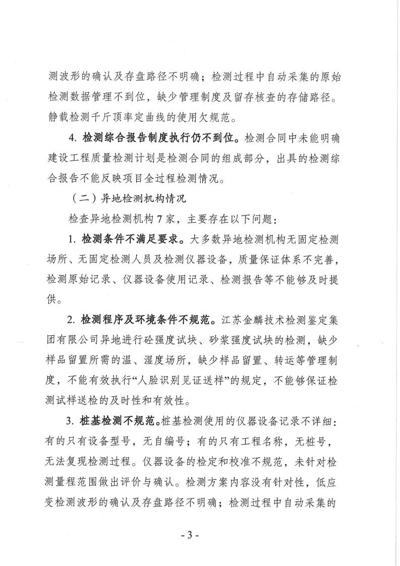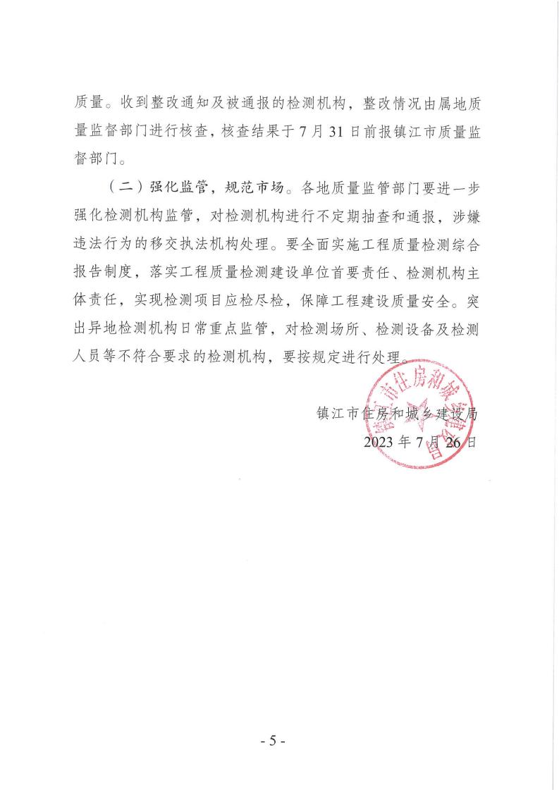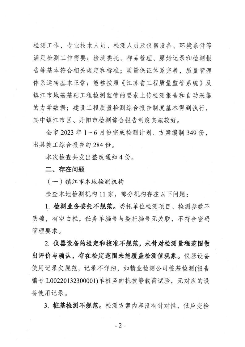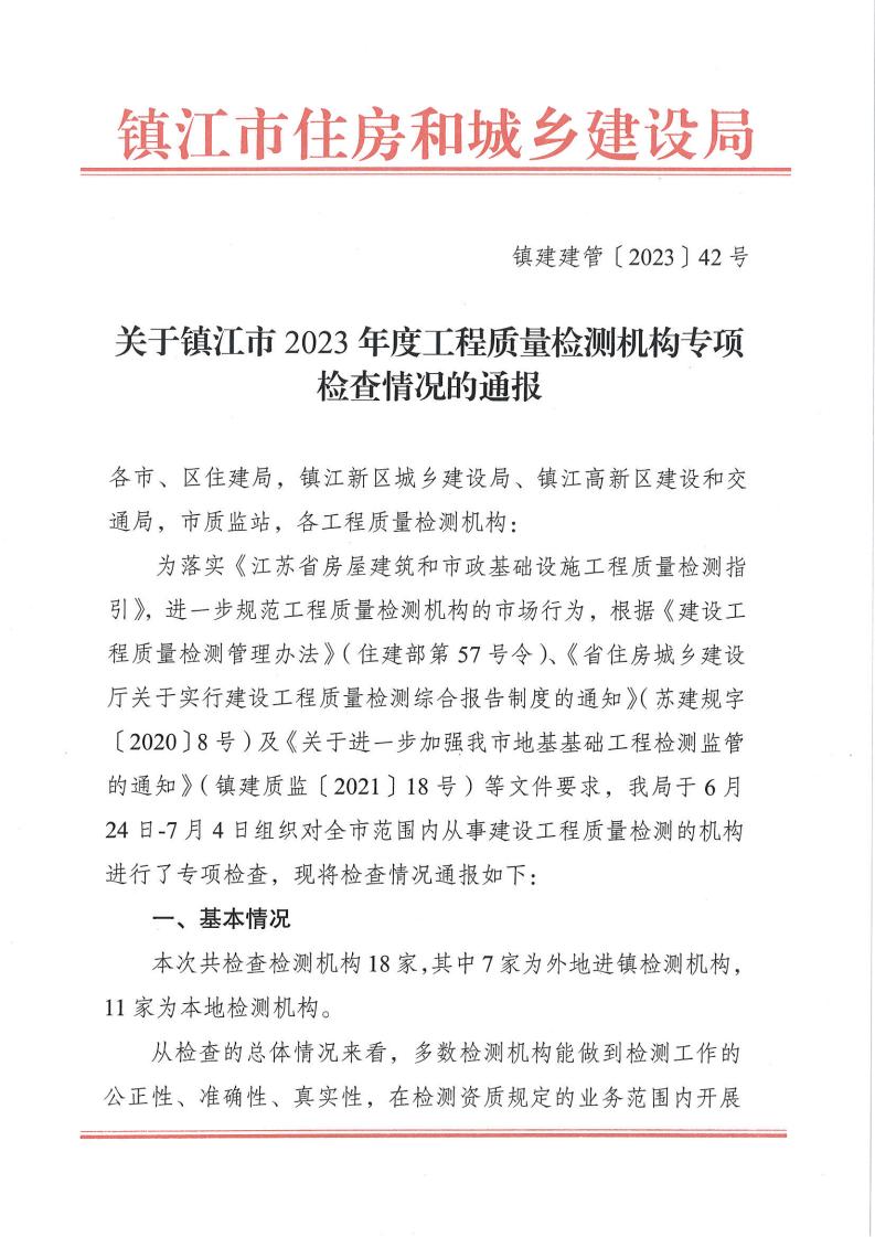 关于镇江市2023年度工程治理检测机构专项检查情况的通报